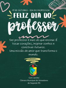 “Neste dia 15 de Outubro, a Câmara Municipal de Vereadores expressa profundo respeito e gratidão aos professores, em especial àqueles que são verdadeiras fontes de inspiração em nosso Município.